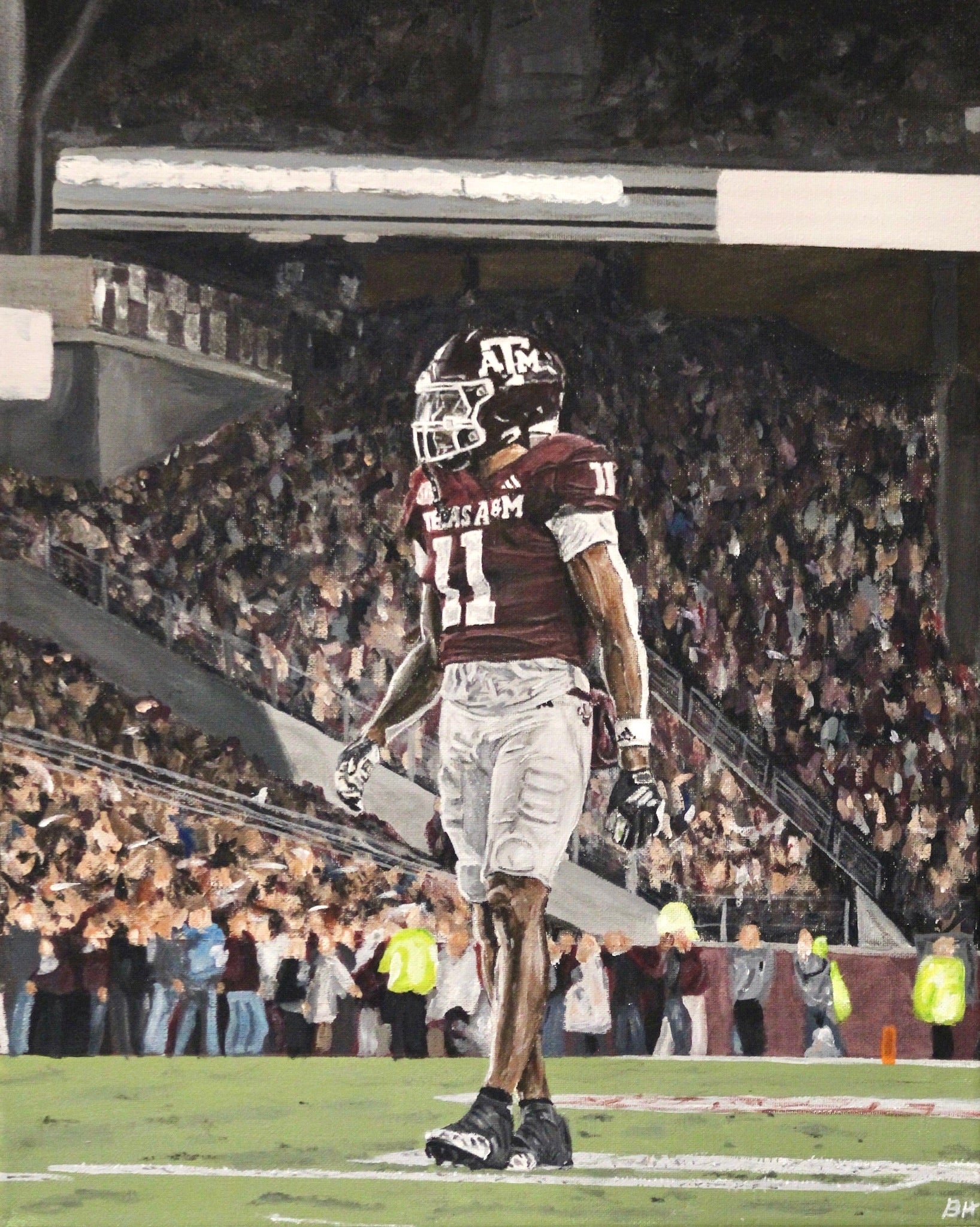 Duece Harmon under the lights of Kyle Field in the 2023 season